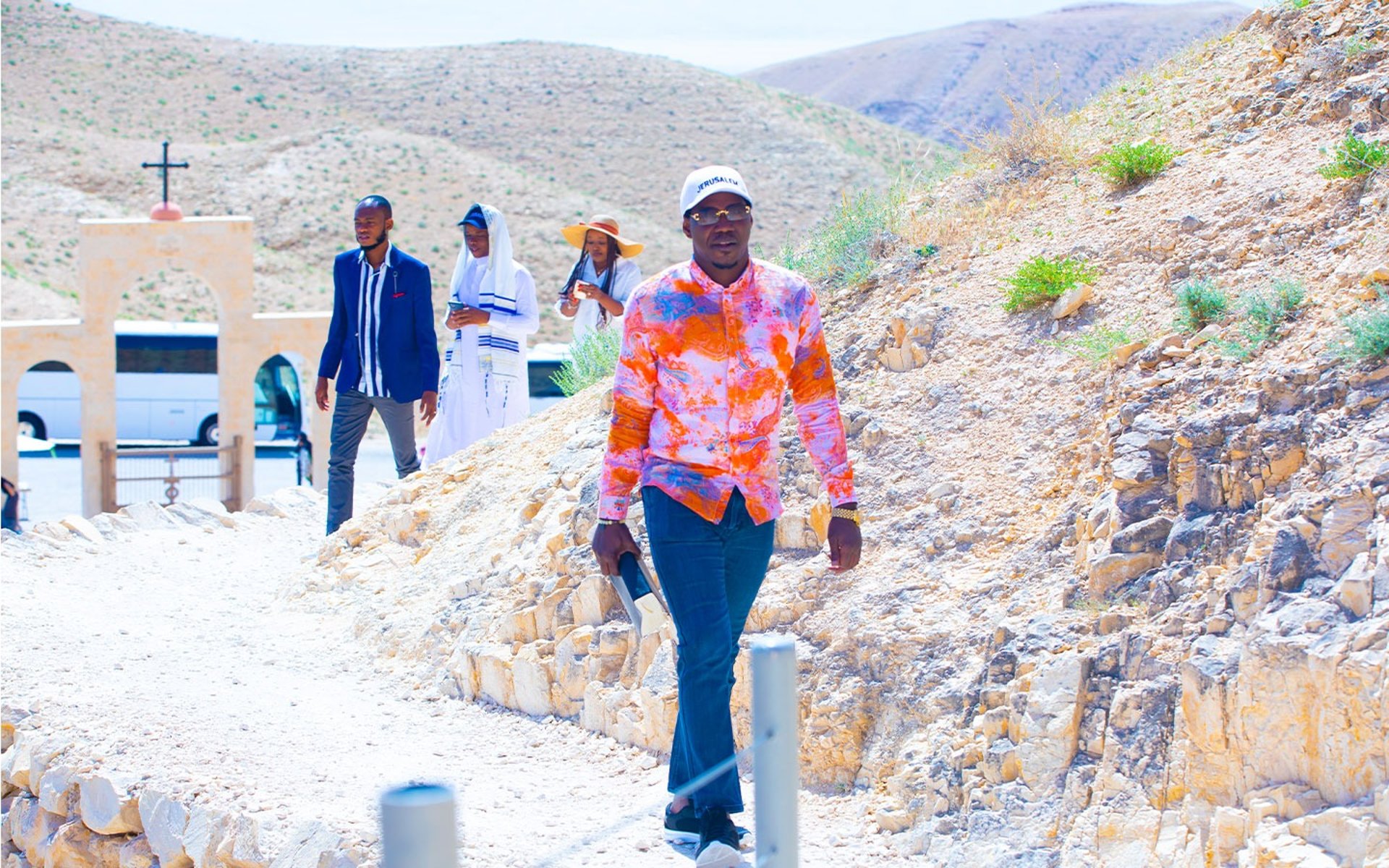 MOUNTAIN OF TEMPTATION (JEBEL QURUNTUL) THE MAN OF GOD PROPHET SS ROLINGA BEING ON THE MOUNTAIN OF PRAYER IN THE CITY OF JERICHO WHERE JESUS WAS TEMPTED BY THE DEVIL HAVING BEEN FASTED FOR FORTY (40) DAYS.