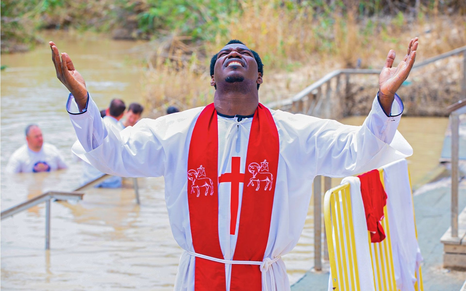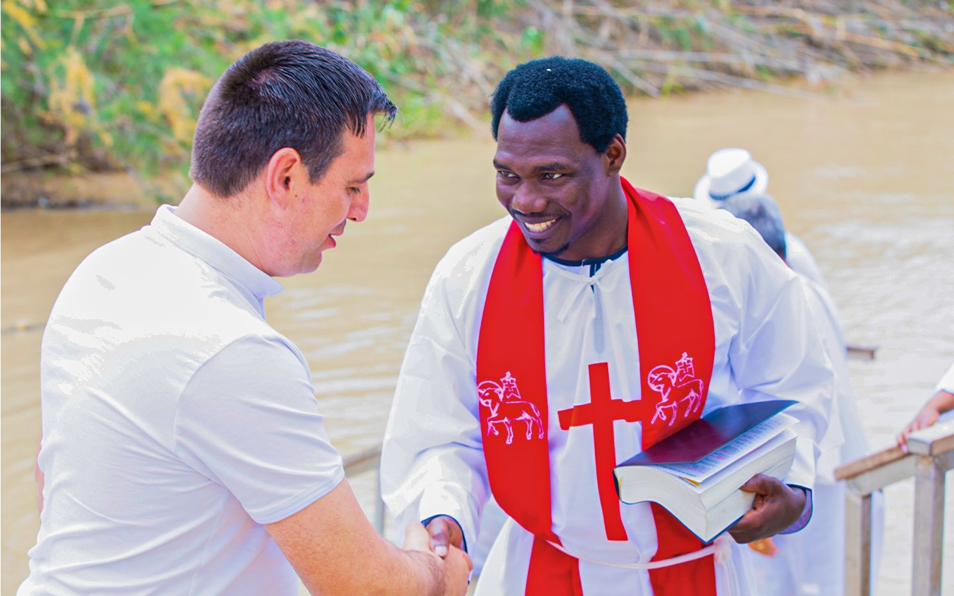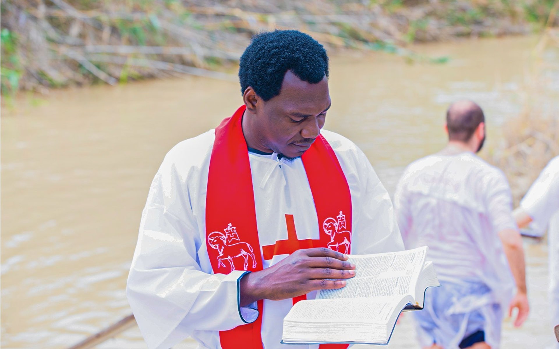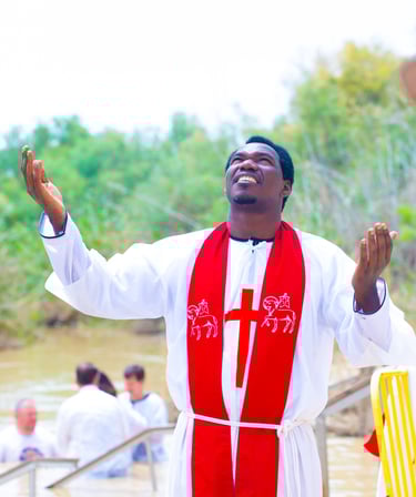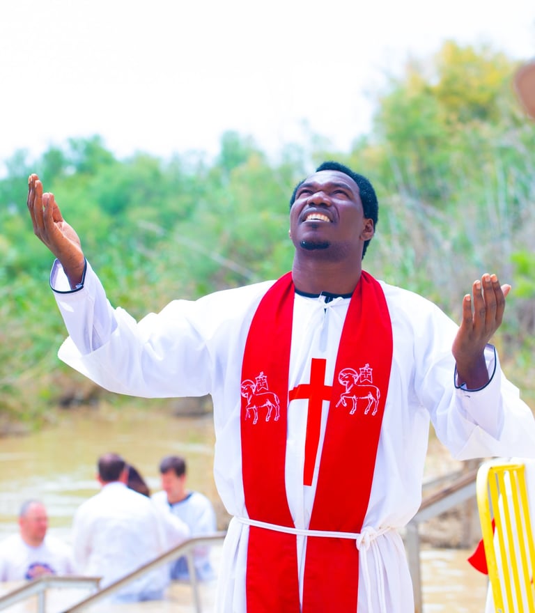 MTU WA MUNGU AKIWA KATIKA IBADA MAALUMU YA UBATIZO KATIKA MTO YORDANI NCHINI ISRAEL, MAHALI AMBAPO NI HISTORIA YA UBATIZO WA YESU KABLA YA KUANZA HUDUMA RASMI.