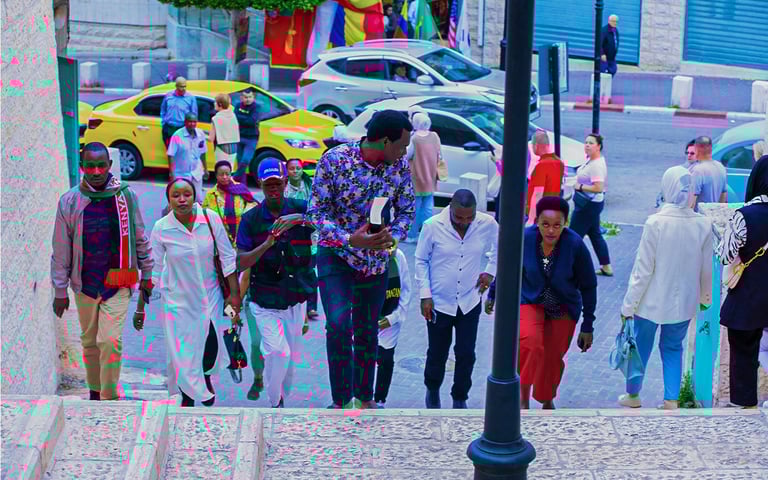 MTU WA MUNGU NABII SS ROLINGA, PAMOJA NA WANAFAMILIA WA OMEGA KUTOKA MATAIFA MBALIMBALI ULIMWENGUNI, WAKIWA KATIKA ZIARA YA KIROHO KWENYE KITONGOJI CHA JAFFA AMBACHO NI KITONGOJI KONGWE ZAIDI HUKO TEL AVIV.