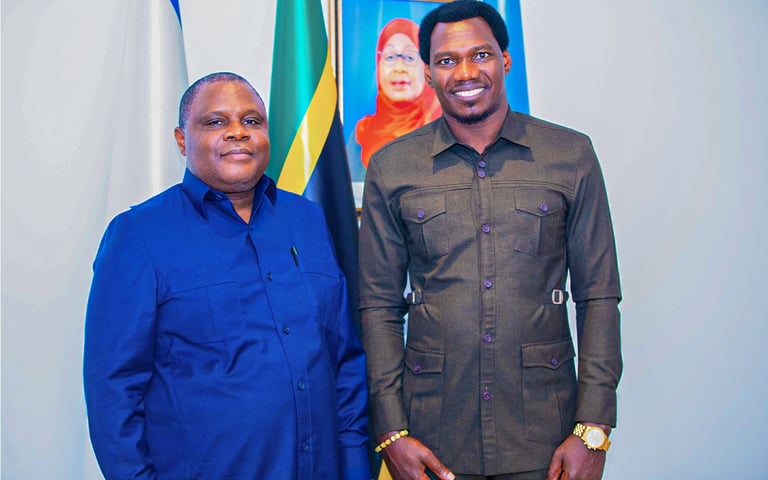 A VISIT TO THE TANZANIAN EMBASSY IN ISRAEL THE MAN OF GOD PROPHET ROLINGA IS IN A PICTURE WITH THE TANZANIA AMBASSADOR TO ISRAEL MH.JOB MASIMA AS IT IS A SPECIAL VISIT OF PROPHET ROLINGA TO THE TANZANIA EMBASSY IN ISRAEL.