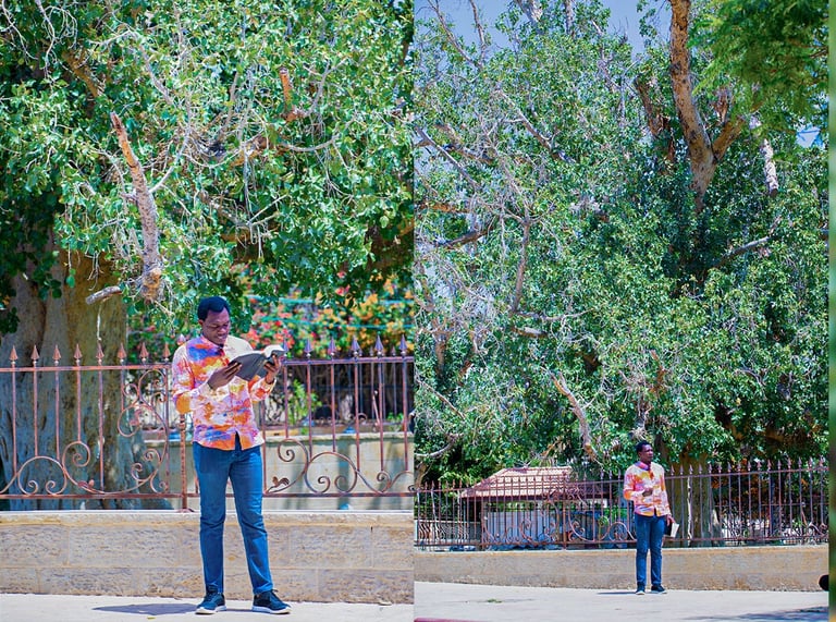 THE MAN OF GOD IN A SYCAMORE TREE IN THE CITY OF JERICHO, THIS TREE HAS CARRIED THE FAMOUS HISTORY OF ZACCHAEUS THE TAX COLLECTOR WHO, BECAUSE OF HIS SHORTNESS, CLIMBED UP A SYCAMORE TO SEE JESUS. IMMEDIATELY AFTER JESUS ARRIVED THERE HE SAW HIM AND CALLED HIM, AND THAT DAY ZACCHAEUS’ LIFE WAS CHANGED.